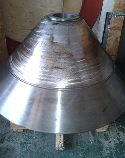我司按標(biāo)準維修工藝,對動錐體鑲套,重新加工螺紋;對動錐體外錐面補焊加工。維修后重新安裝球體。