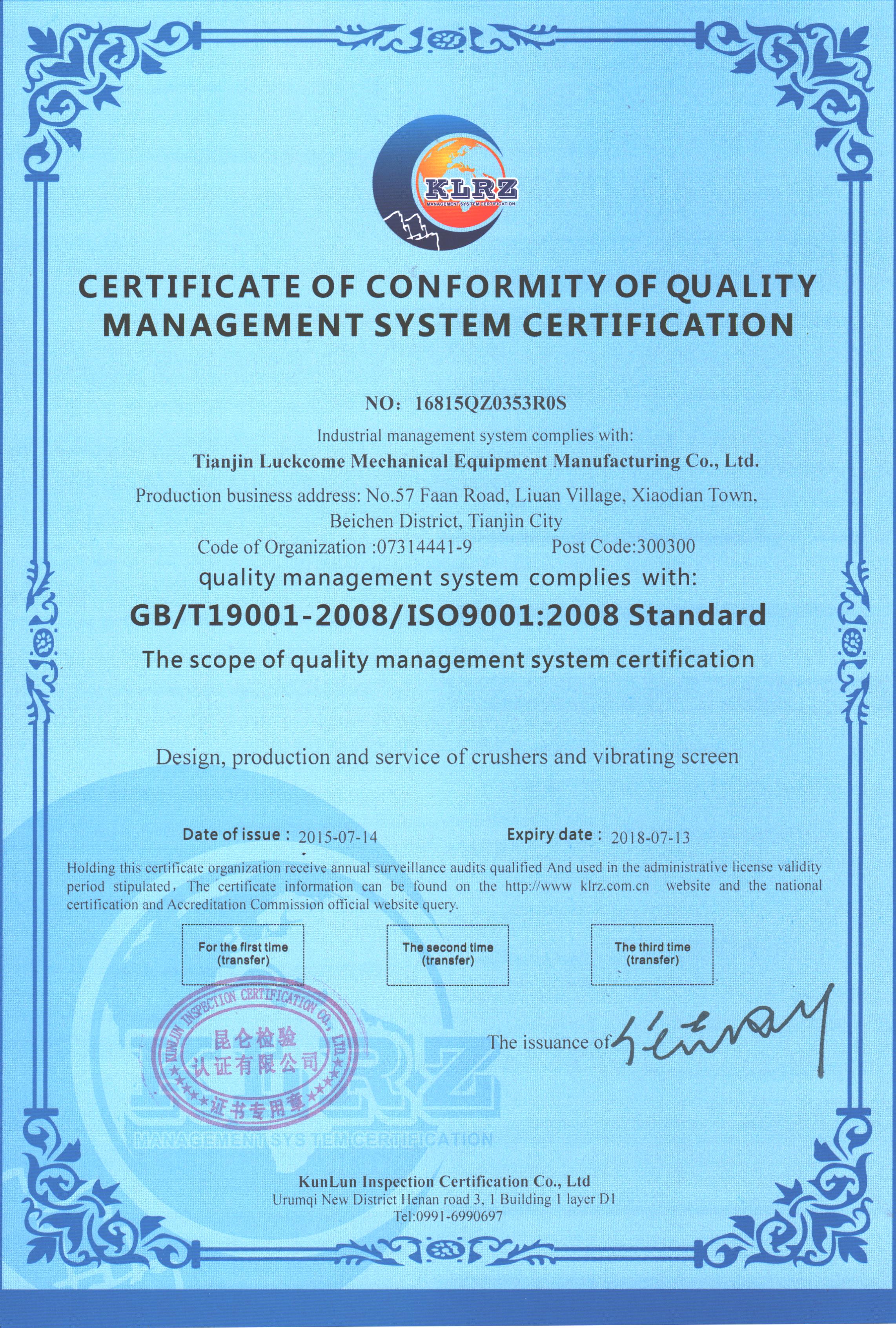 2015年7月3日,中質協質量保證中心的兩位專家蒞臨我公司,對我公司質量管理體系認證進行現場評審 .  經過專家組的認真審核,我公司各項審核項目均達到了ISO9000質量管理體系規定標準,順利通過此次質量管理體系評審。我們在今后的工作中要一如既往的嚴格執行質量管理體系及規章制度,嚴格按照標準進行生產作業,持續提高產品質量,為煤礦行業提供高質量的產品和服務!