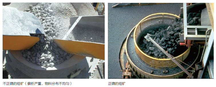 05. 沿破碎腔周圍的給料分布不均勻