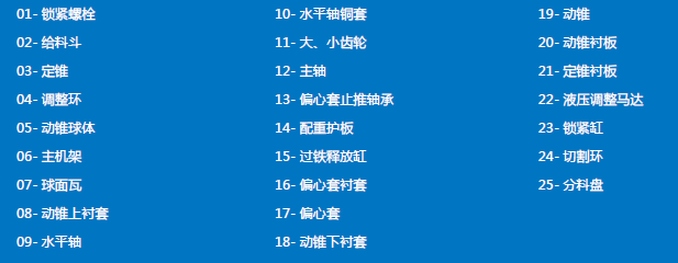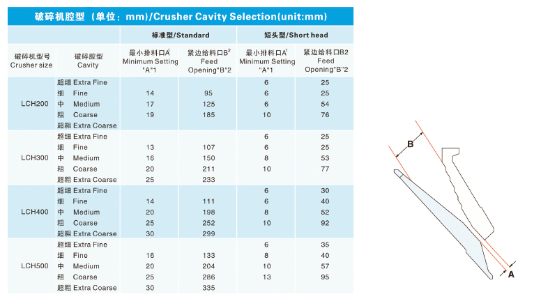 LCH 系列圓錐破碎機只需更換定錐襯板、動錐襯板、適配環和楔塊螺栓,即可將破碎腔型在短頭超細到標準超粗之間任意轉換。